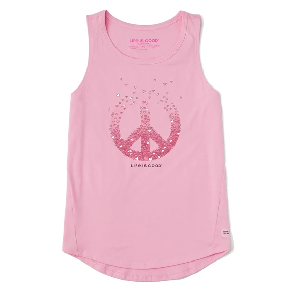 Women’s Floating Hearts Peace Sign Sleeveless High-Low Crusher Tank