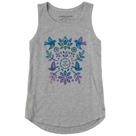 Women’s Folk Art Garden Tie Dye Sleeveless High-Low Crusher Tank
