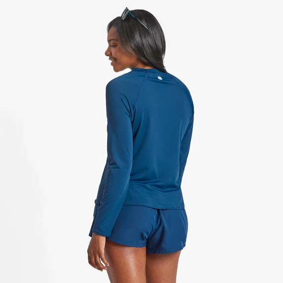 Keep the sun’s rays at bay in this long sleeve rashguard top. Perfect for hanging pool- or shoreside on sun-drenched summer days. Matching bottoms available.