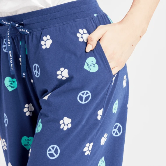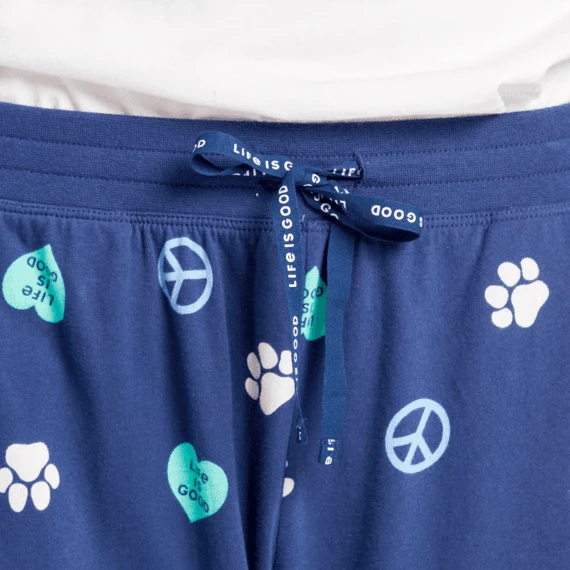 - Elastic encased rib waistband. Twill drawcord with Life Is Good® print.