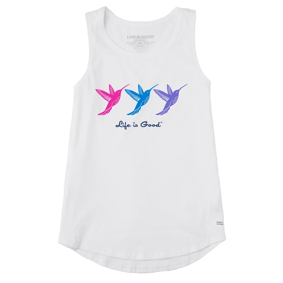 Women’s Three Colorful Hummingbirds Sleeveless High-Low Crusher Tank