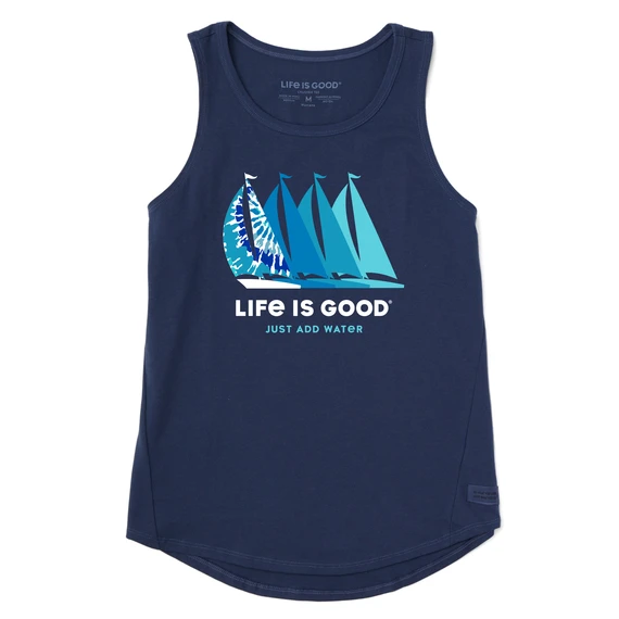 Women’s Tie Dye Just Add Water Sailboat Sleeveless High-Low Crusher Tank