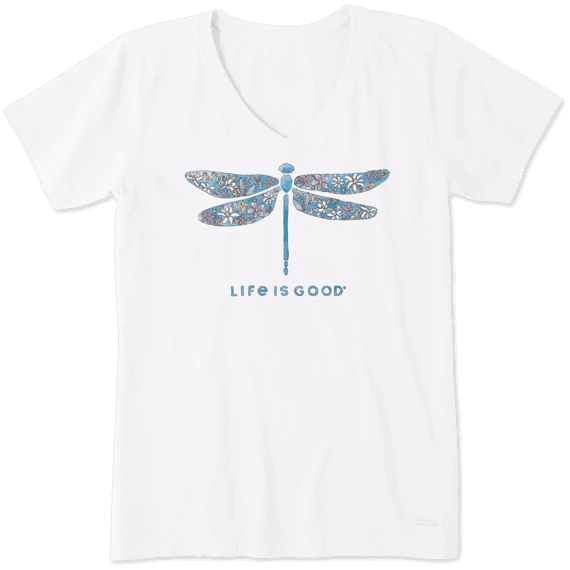 Women’s Wildflower Dragonfly Watercolor Short Sleeve Vee